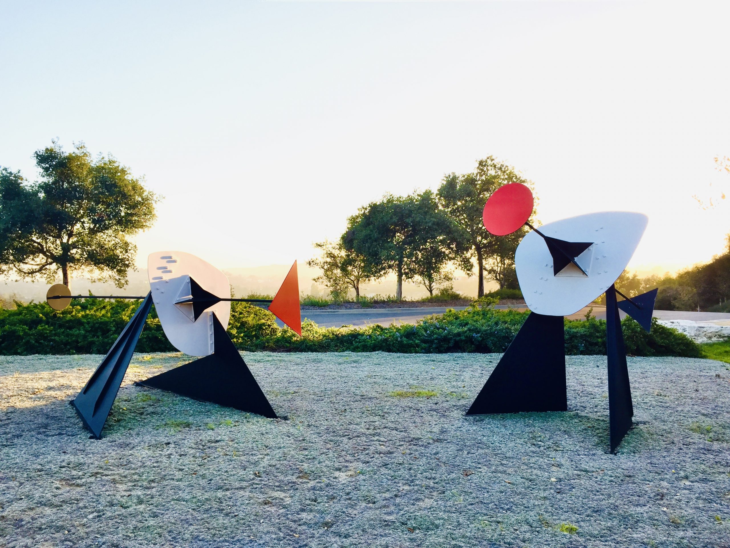 Double Gong (1953) inside Calder’s Motion Lab and Trois disques (1967) by the Living Wall garden at SFMOMA